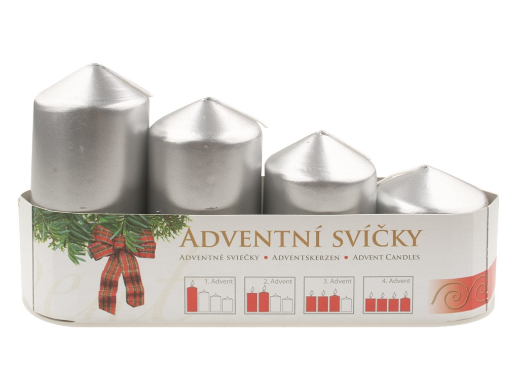 Adventní svíce využijete na věnce či různé vánoční vazby. Parametry: 50 x 60 mm, doba hoření: cca 21 hodin 75 x 60 mm, doba hoření: cca 24 hodin 90 x 60 mm, doba hoření: cca 27 hodin 105 x 60 mm, doba hoření: cca 30 hodin Vysoká kvalita - RALzkušenosti, znalostí a dovednosti pracovníků společně s používanými materiály umožňují vyrábět svíčky nejvyšší kvality certifikované i celoevropským certifikátem kvality RAL.Pro výrobu se používají pouze prvotřídní rafinované parafíny nebo stearin, které neobsahují škodlivé látky.Stejný důraz na kvalitu jsou kladeny i u ostatních materiálů jako jsou knoty, kalíšky atd.Doplňkové parametry