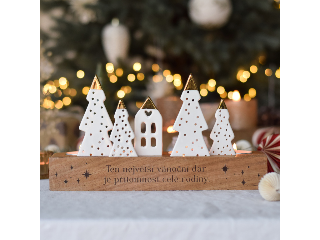 Adventní svícen - Vánoční dar s domečkem a stromky