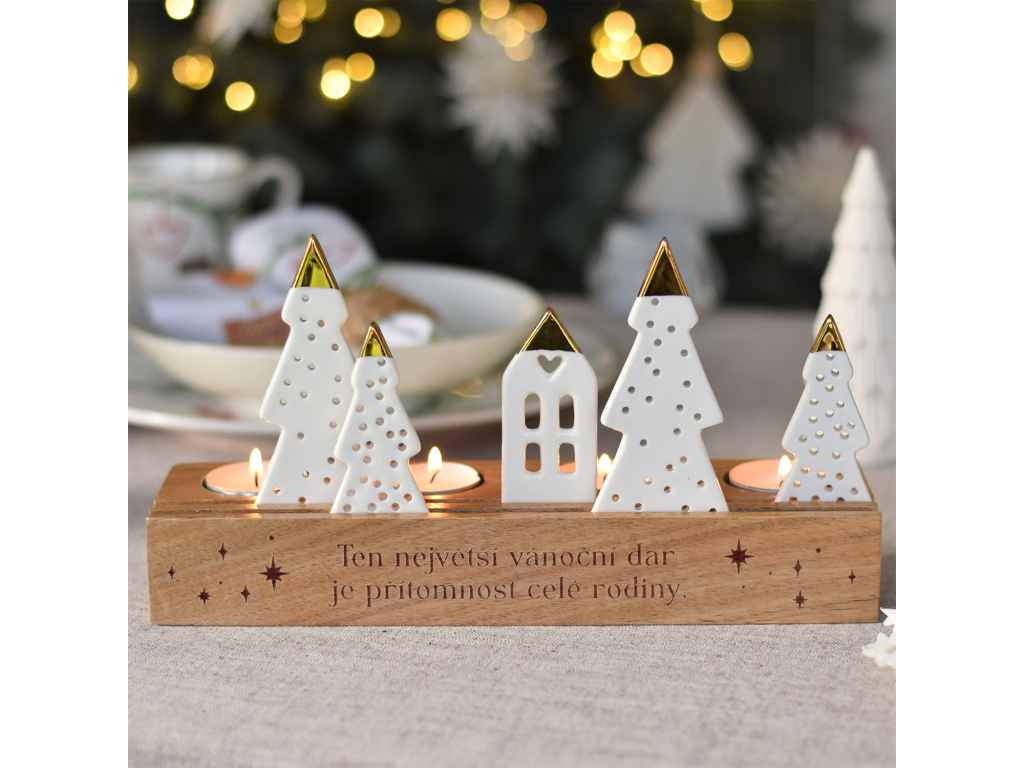 Tento adventní svícen na čtyři čajové svíčky vám od srdce doporučujeme. Skvělé propracování, český text a zlaté detaily udělají vaše Vánoce opravdu vkusné a nezapomenutelné!