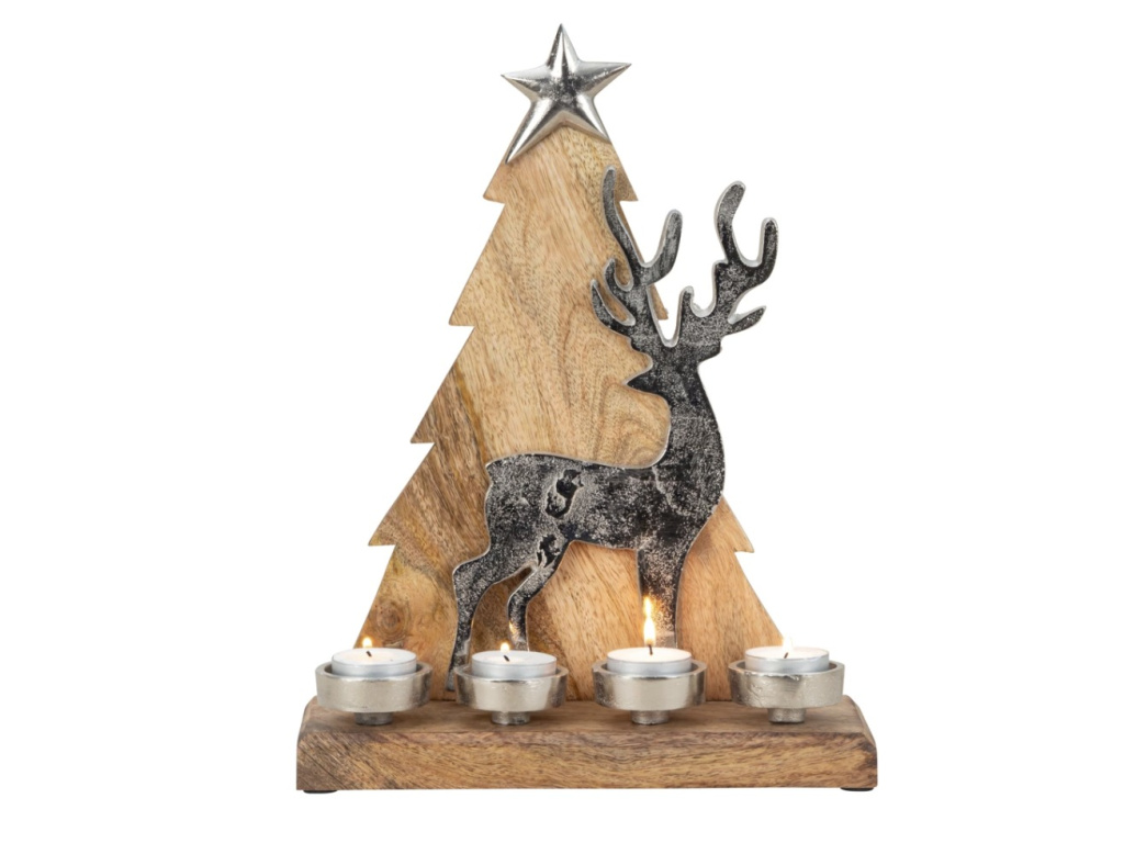 Svícen - dřevěný stromeček s jelenem, 33.5 cm