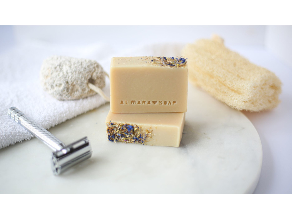 Luxusní mýdlo - SHAVE IT ALL - 90g Přírodní mýdlo s bohatou pěnou vhodné na holení Hladká pokožka bez pěny na holení? Pro někoho nepředstavitelné, pro nás ekologická, a ta nejvíc krémová realita! S tímto mýdlem vznikne dokonalá rovnováha mezi nulovým odpadem a nulovým nežádoucím ochlupením. Ať už si potřebujeme oholit nohy, intimní partie nebo se rozloučit s mužným plnovousem, tohle mýdlo vaší žiletce podá pomocnou ruku. Obsahuje pečující rostlinné oleje včetně bio para ořechového a ricinového - oba jsou lisované za studena, bílý jíl, koloidní oves a sušené kokosové mléko. Tyto ingredience vytvoří extra bohatou, jemnou pěnu a pokožce dodají ochranu a výživu. Pomyslnou třešničkou na dortu je pak krásná vůně 100% esenciálních olejů pomeranče a levandule se zdobením květy chrpy. Použité suroviny jsou zároveň známé svými zklidňujícími účinky. Tip: Pokožku po holení ošetřete vhodným pečujícím produktem – například naším pleťovým olejem nebo šlehaným máslem Perfect Body. Hmotnost: 90 g (± 5 g) MOHLO BY VÁS ZAJÍMAT : ➤ Tělová kosmetika ➤ Tuhá a tekutá mýdla ➤ Do koupeleDoplňkové parametry