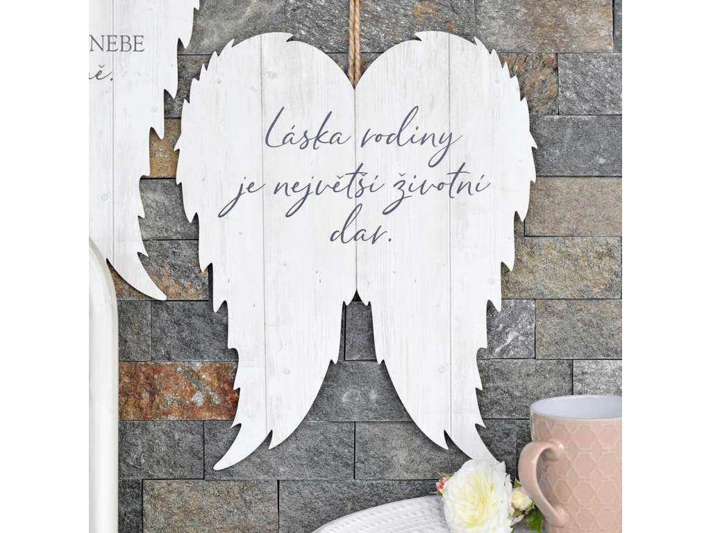 Tato úchvatná andělská křídla velkého rozměru jsou krásnou dekorací do útulného domu. Vybírejte ze dvou rodinných citátů, které každý ocení.