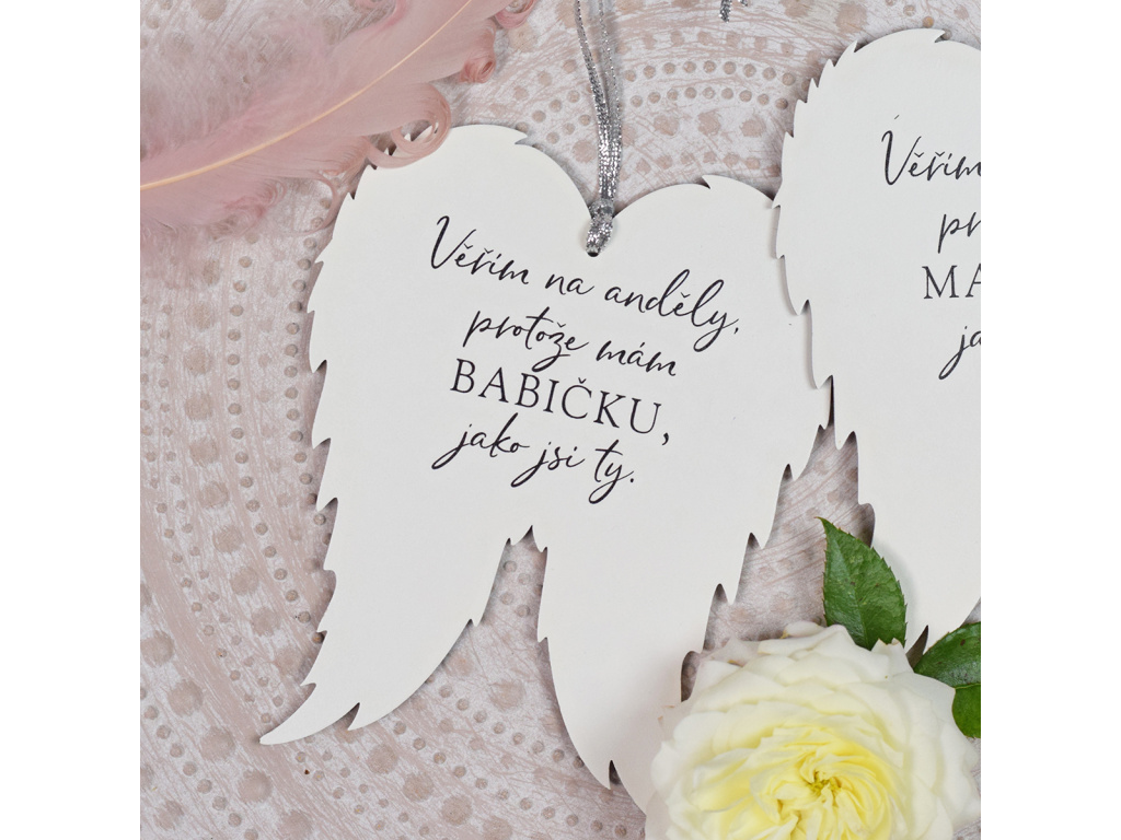 Obdarujte svou milovanou babičku krásným a zároveň cenově dostupným dárkem. Varianta dárkových křídel pro babičku s láskyplným citátem je to pravé!