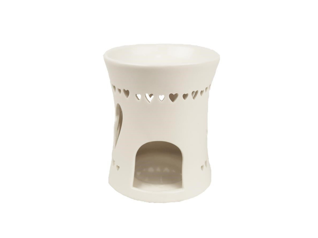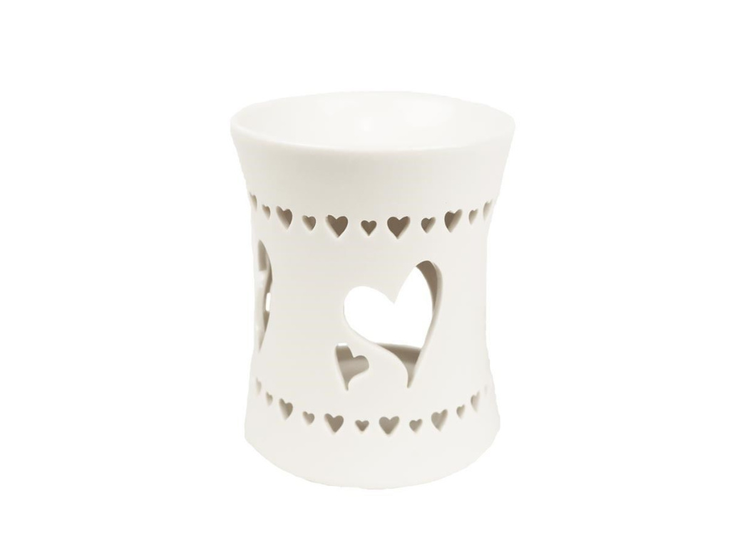 Keramická aromalampa se srdíčky - bílá 11x13cm