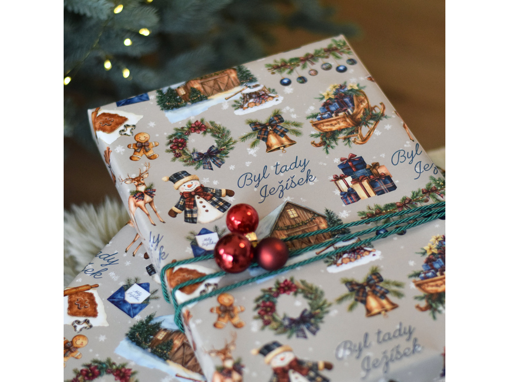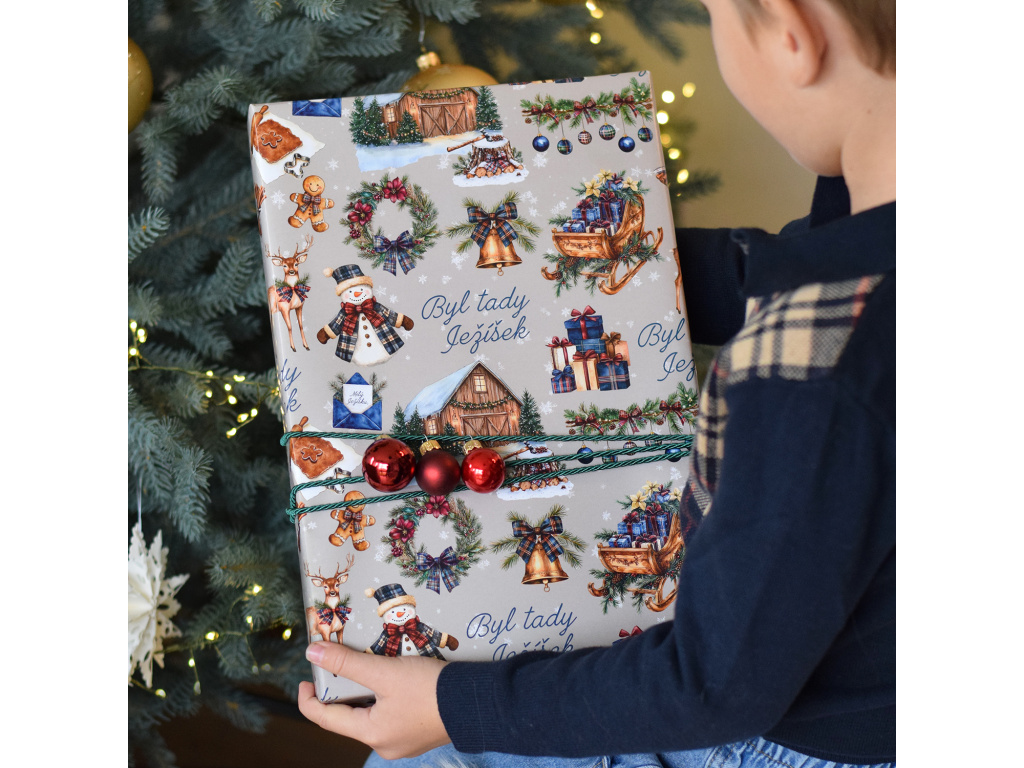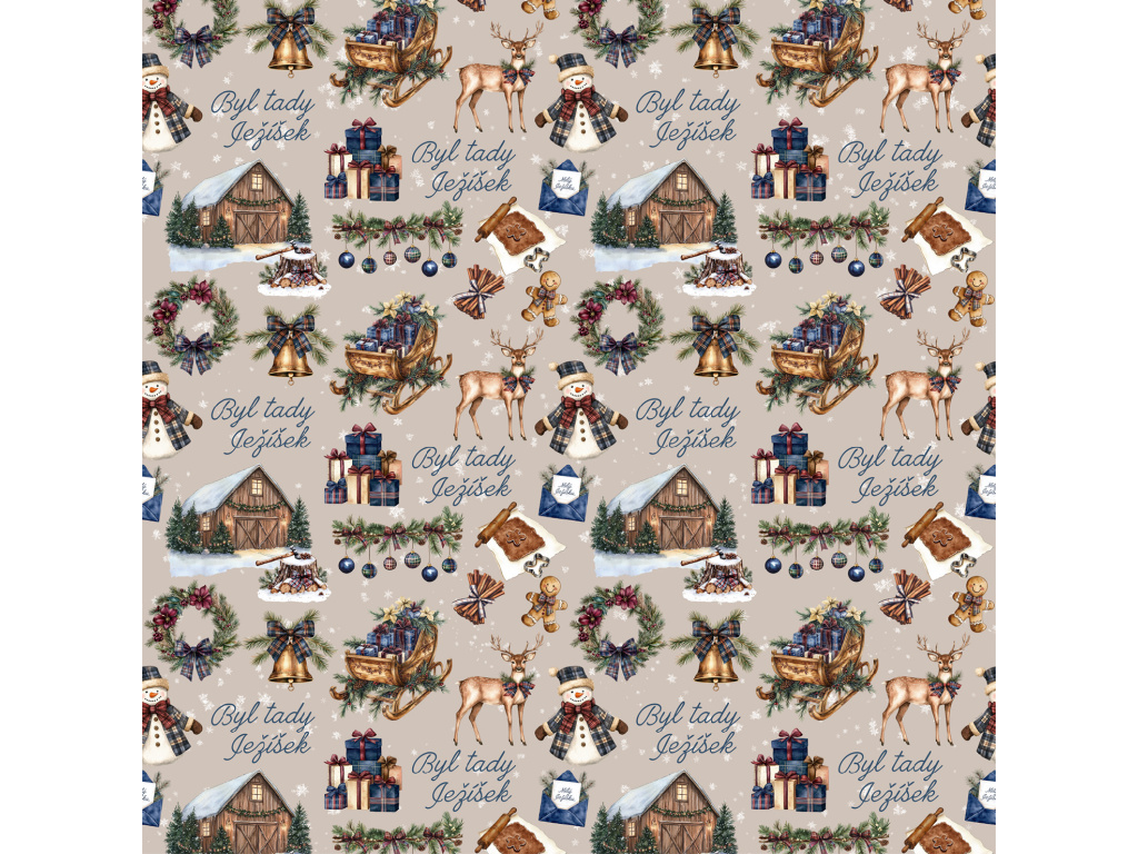 Náš balicí papír s textem „Byl tu Ježíšek“ přináší hřejivé kouzlo zimy. Na ilustracích najdete sněhuláka, dřevěnou chatu, sáně plné dárků, vánoční věnec i dopis pro Ježíška – vše doplněné českým nápisem „Byl tu Ježíšek“.