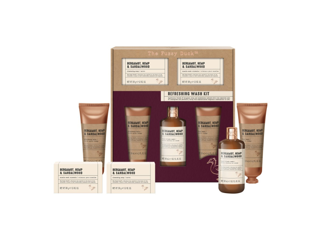 V prémiové kolekci péče pro muže The Fuzzy Duck se snoubí divoká krása přírody s gentlemanskou elegancí a sofistikovaným vzhledem. Rustikální estetika inspirovaná přírodními materiály kombinuje vínové a přírodní tóny s bronzovými prvky a s etiketami v typickém lékárnickém stylu. Vytvořeno s jedinečnou vůní, která spojuje hřejivé konopí s jemnými tóny santalového dřeva a špetkou energizujícího bergamotu.
