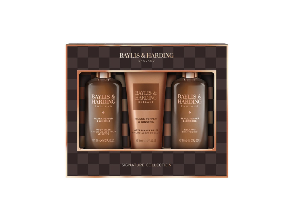 Nadčasová a sofistikovaná pánská kolekce Black Pepper & Ginseng propůjčila svému designu moderní, dynamický vzhled s ikonickou šachovnicovou grafikou a elegantními bronzovo-zlatými detaily. Společně s ovocno-kořeněnými tóny černého pepře, ženšenu, cedrového a santalového dřeva vytváří elegantní kolekci produktů péče o tělo pro všechny gentlemany.