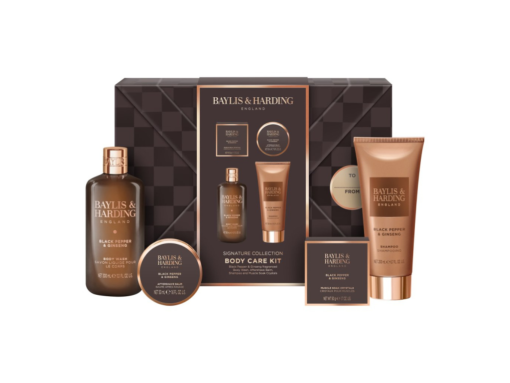 Nadčasová a sofistikovaná pánská kolekce Black Pepper & Ginseng propůjčila svému designu moderní, dynamický vzhled s ikonickou šachovnicovou grafikou a elegantními bronzovo-zlatými detaily. Společně s ovocno-kořeněnými tóny černého pepře, ženšenu, cedrového a santalového dřeva vytváří elegantní kolekci produktů péče o tělo pro všechny gentlemany.