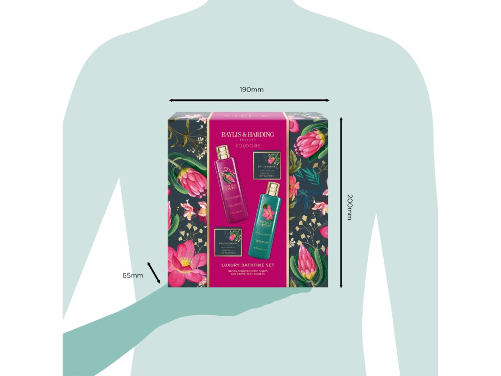 Tato nádherná dárková sada ukrývá 4 pečující produkty pro pokožku celého těla. Připravte se na jedinečný zážitek a rozmazlujte svou pokožku pomocí této exkluzivní kolekce produktů s vůní banánu, broskve a pomerančových květů. Obsahuje sametově jemný sprchový a koupelový krém, pěnu do koupele a tuhé mýdlo pro dokonalý pocit čistoty.