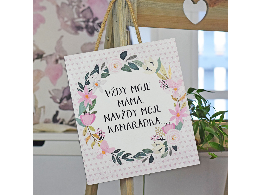 Ručně vyrobená dřevěná závěsná cedule s citátem "Moje máma, moje kamarádka"