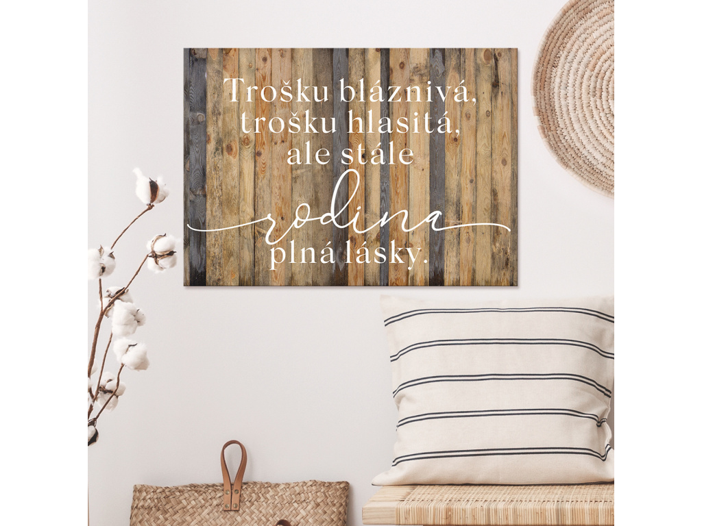 Cedule na zeď s citátem - "Trošku bláznivá, trošku hlasitá, ale stále rodina plná lásky"