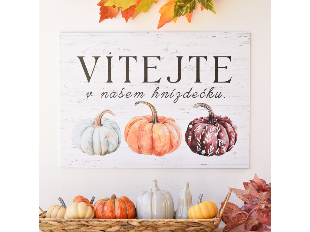 Cedulka - Vítejte v našem hnízdečku (s dýněmi)