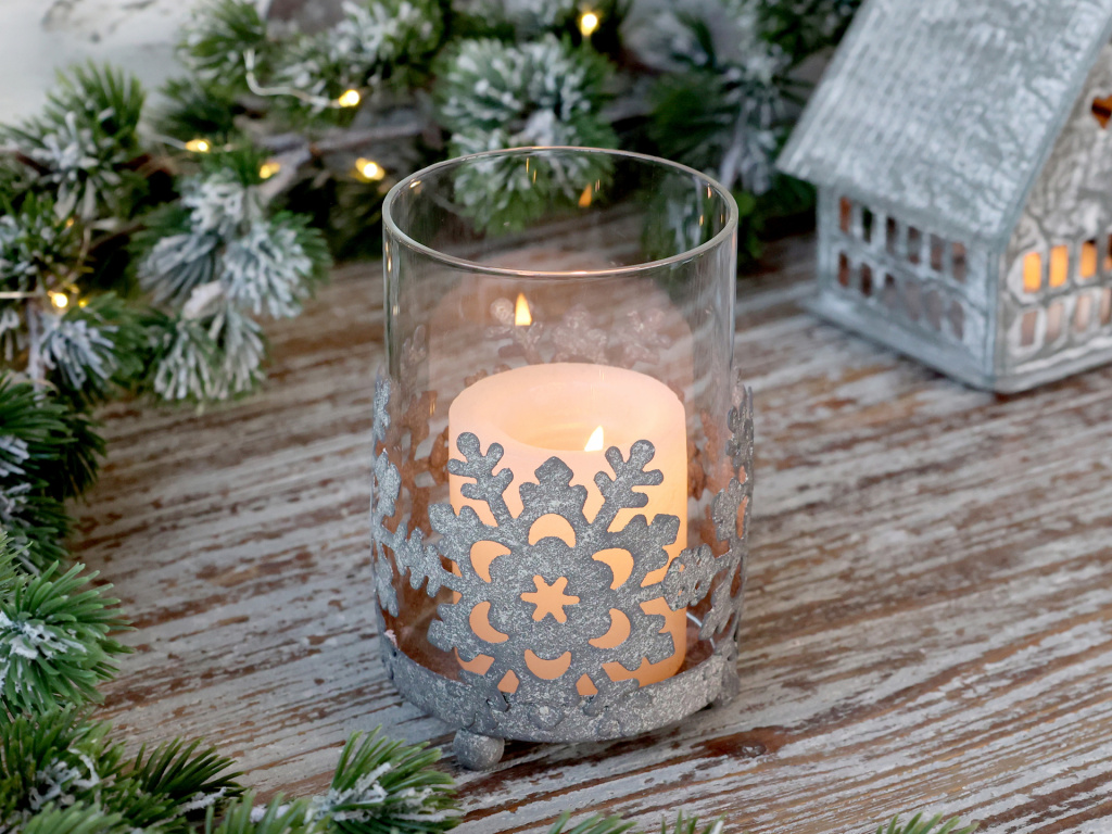 Skleněný svícen s vločkou