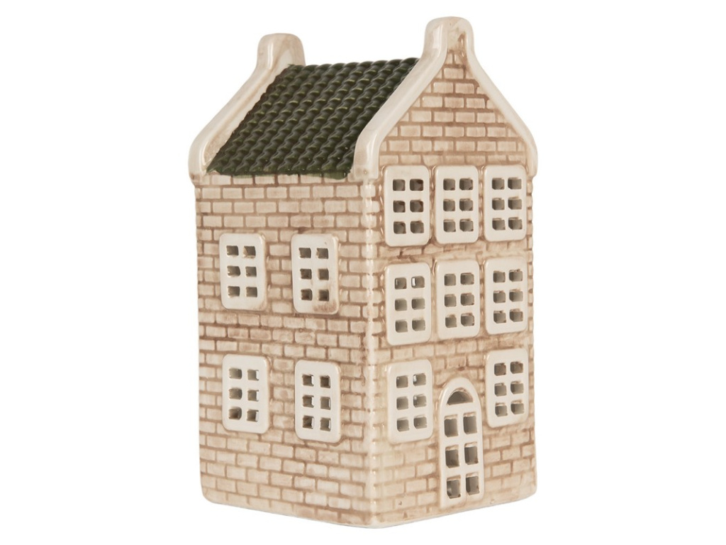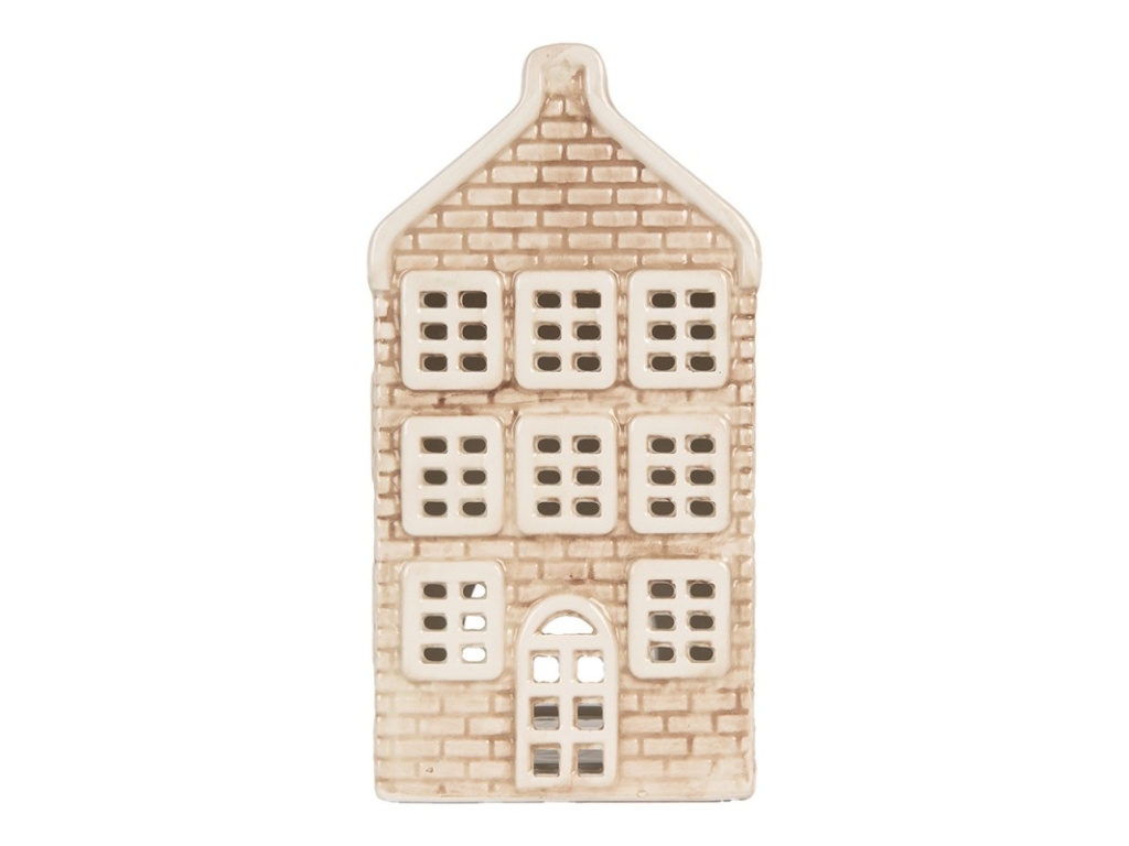 Domeček na čajové svíčky 9x10x19 cm béžový keramika