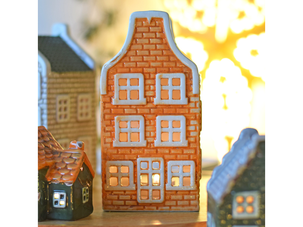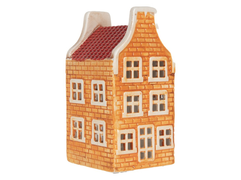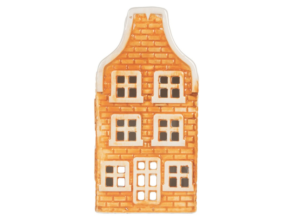 Domeček na čajové svíčky 9x10x19 cm oranžový keramika