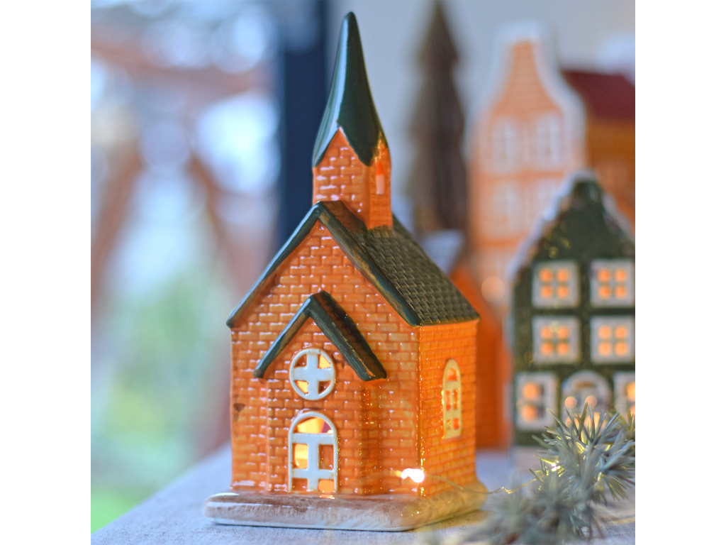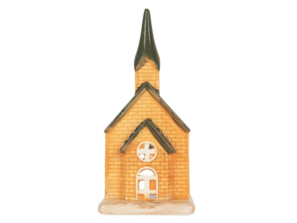 Domeček na čajové svíčky 9x8x21 cm oranžový keramika