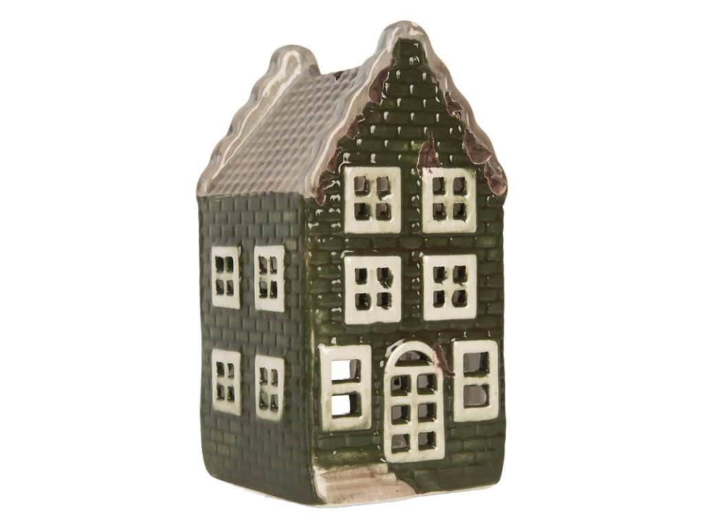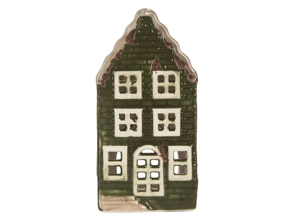 Držák na čajové svíčky domeček 7x7x14 cm zelený keramika
