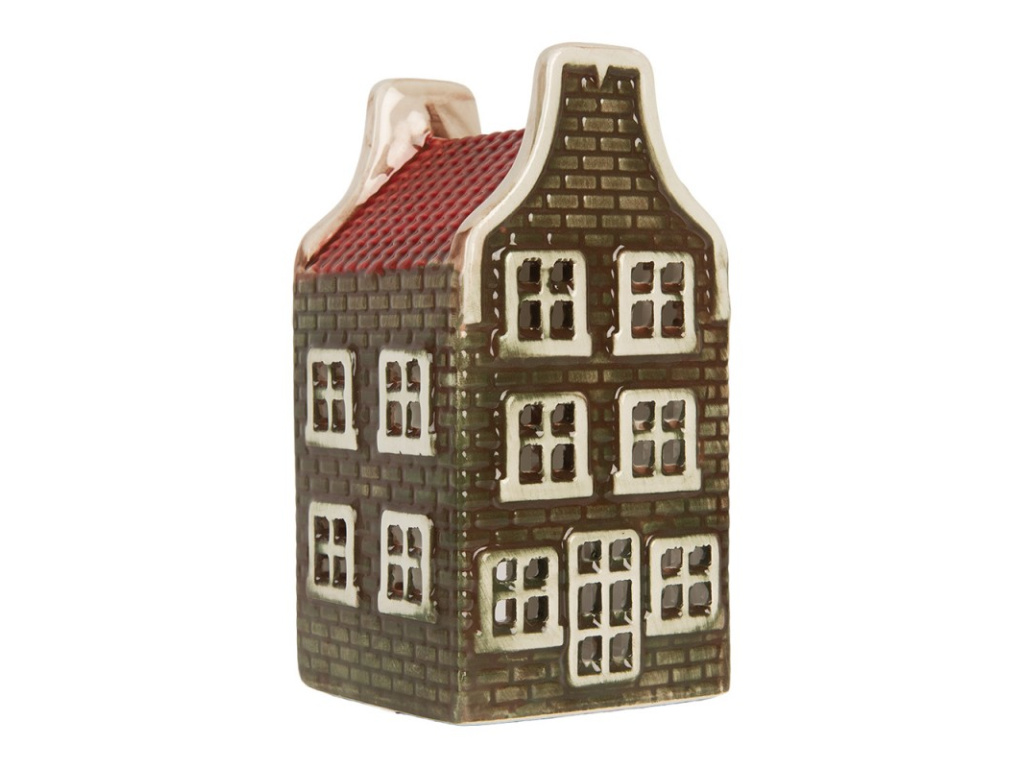 Držák na čajové svíčky domeček 7x7x14 cm zelený keramika