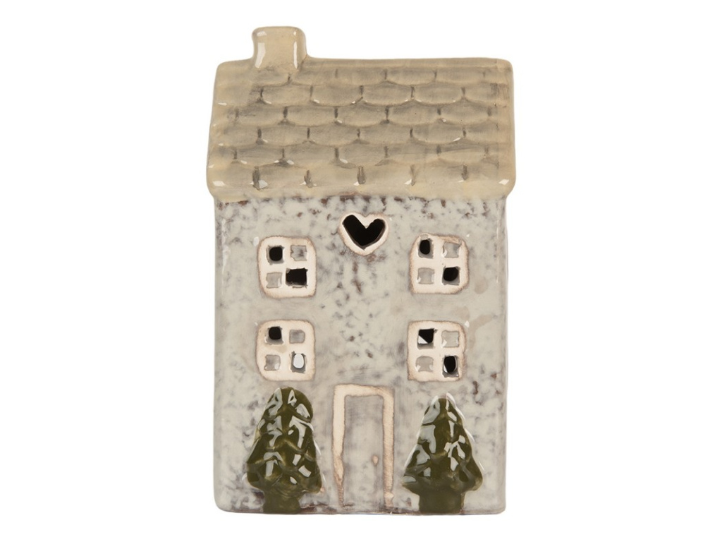 Držák na čajovou svíčku Dům 9x8x15 cm Šedá Keramika
