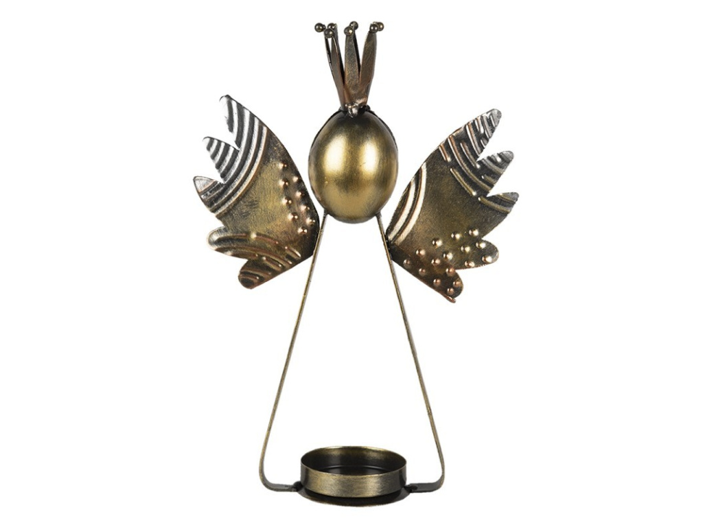 Dekorační kovový svícen ve tvaru anděla.