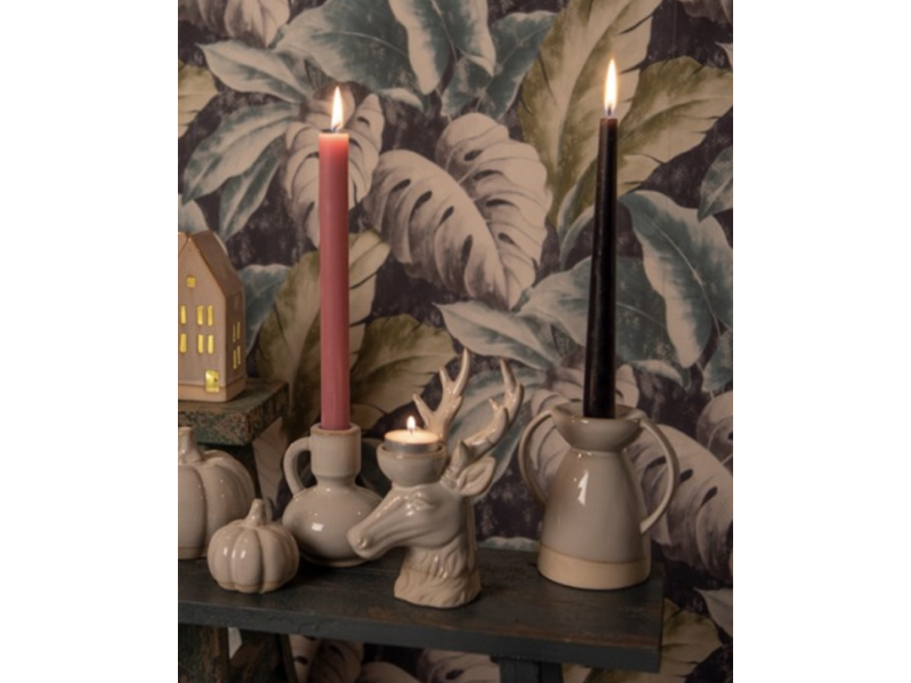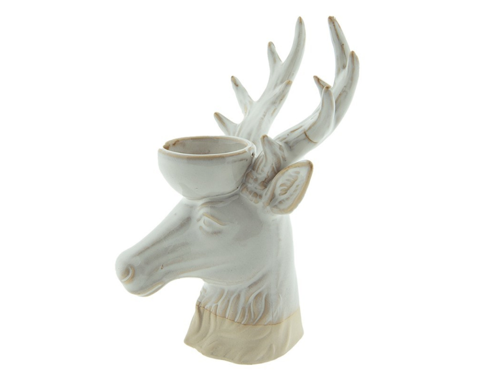 Dekorativní porcelánový svícen ve tvaru soba ve venkovském stylu.