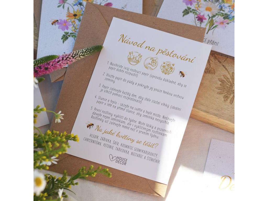 Originální přání „Krásný Den matek“ je víc než jen milá pozornost – je to malý zázrak ukrytý v papíru. Přání je vyrobeno ze speciálního papíru se semínky lučních květin, které po zasazení vyrostou v barevnou květinovou louku.