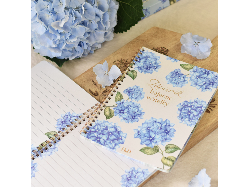 • Zápisník s motivem hortenzie s kroužkovou vazbou potisknutý barevně i uvnitř. (50 oboustranných listů)