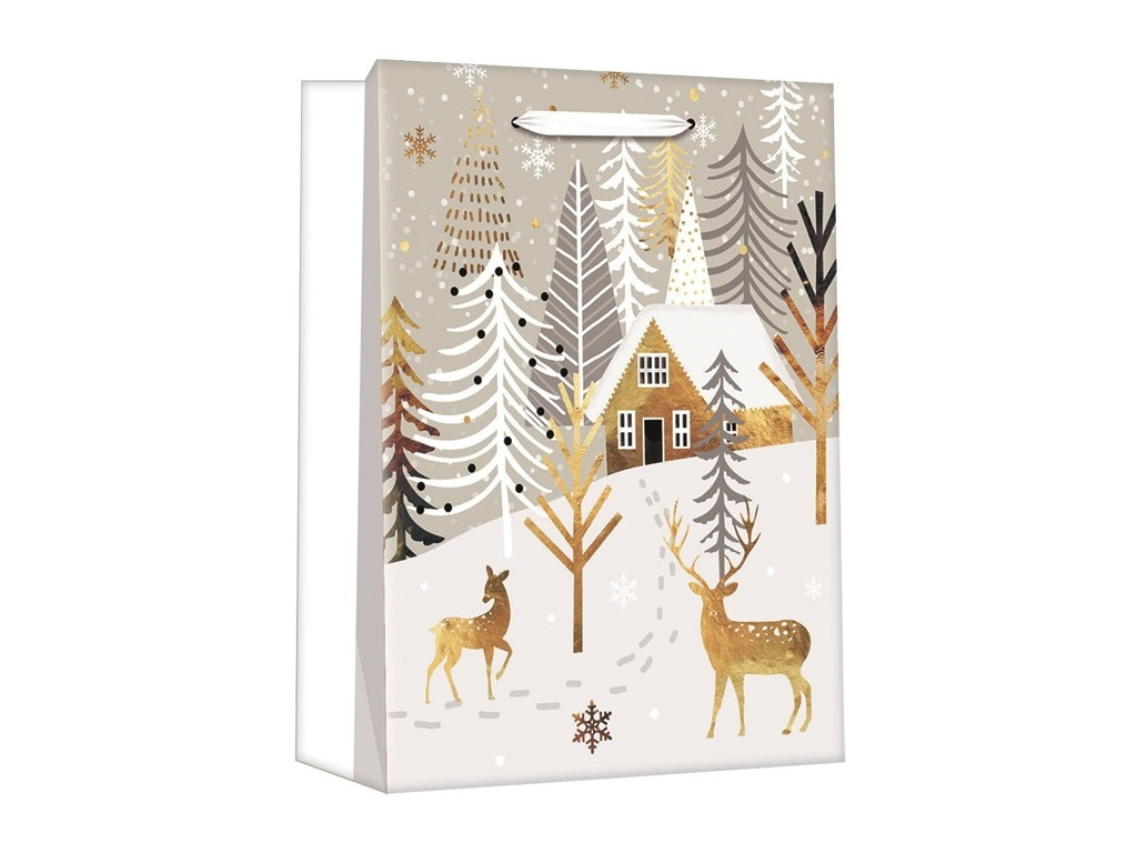 Taška dárková vánoční se zlatou ražbou L+ 30 x 42 x 12 cm