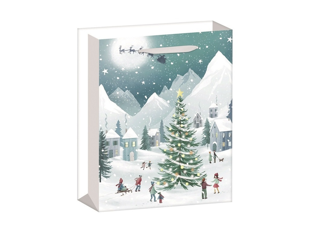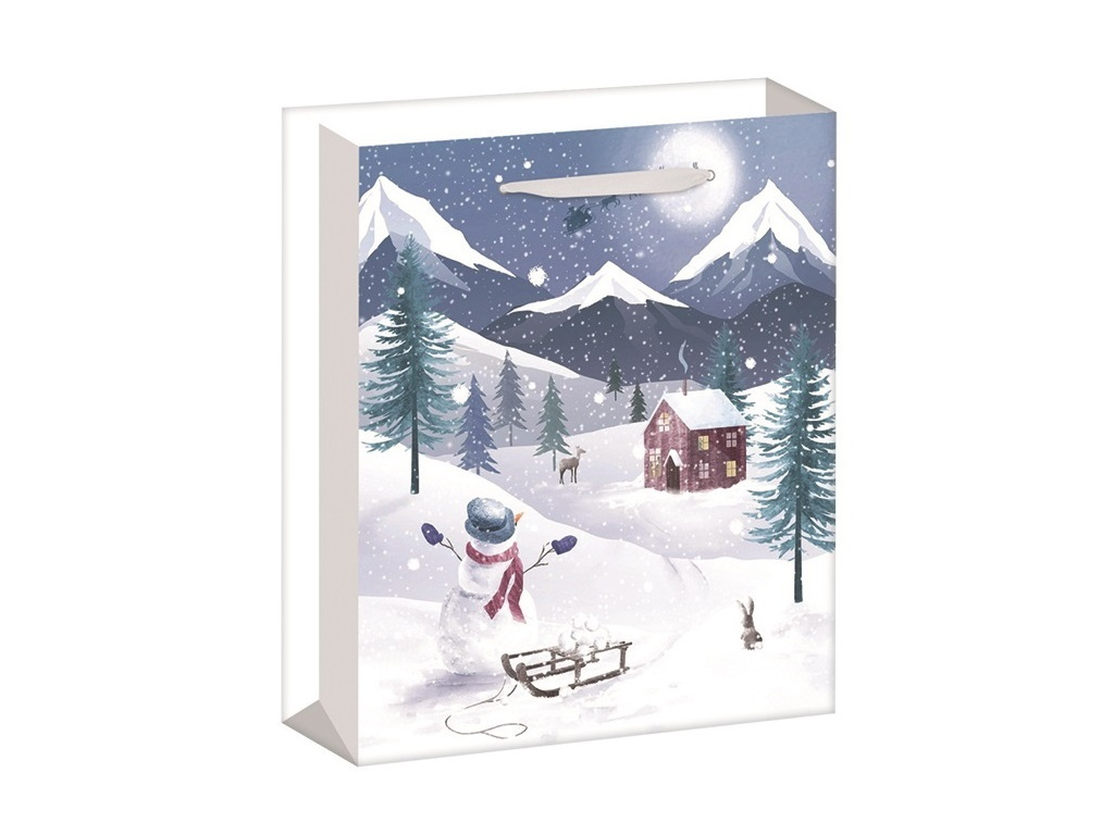 Taška dárková zimní krajina s glitrem L+ 30 x 42 x 12 cm