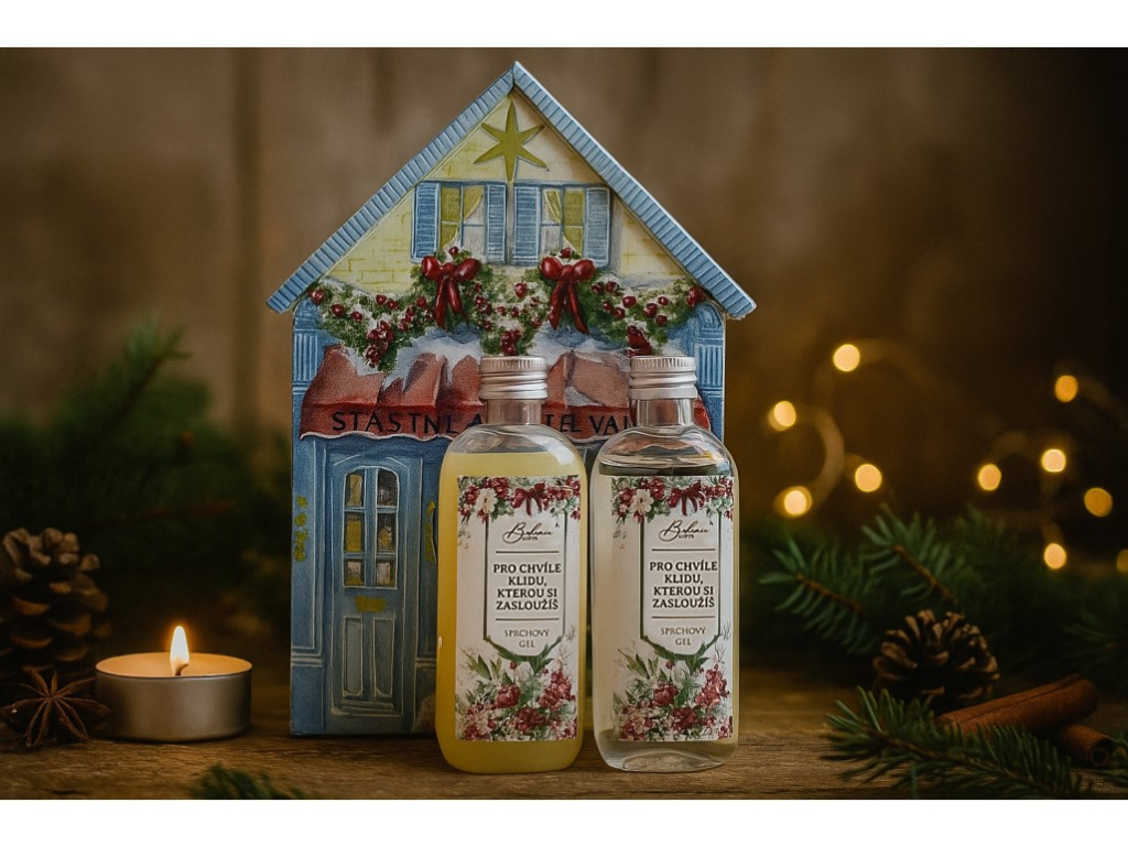 Vneste do koupelny vánoční atmosféru s dárkovou sadou Domeček Šťastné a veselé. Tento originální set v podobě malého domečku potěší nejen svým vzhledem, ale i příjemnou péčí o pokožku.Balení obsahuje:2× sprchový gel 100 ml – jemně čistí, osvěžuje a zanechává pokožku provoněnou a svěží.Díky krásnému vánočnímu balení ve tvaru domečku je sada připravená rovnou k darování. Ideální jako drobnost pod stromeček, milá pozornost pro rodinu, přátele nebo kolegy.