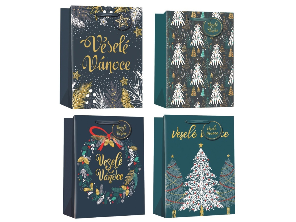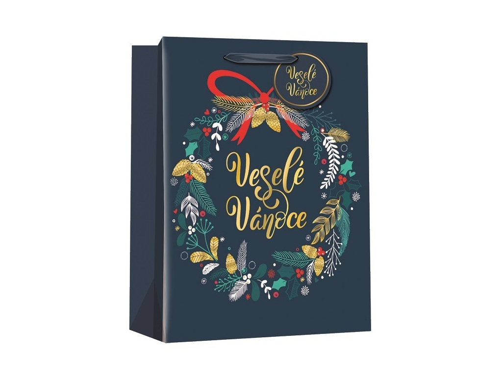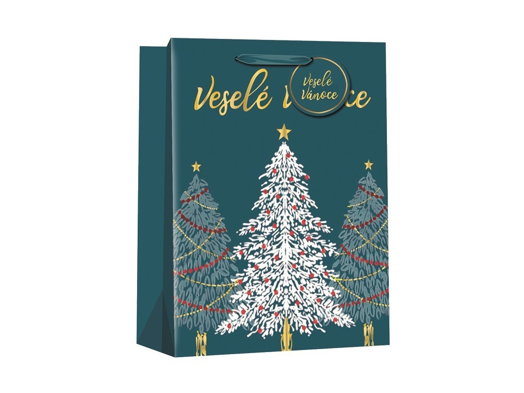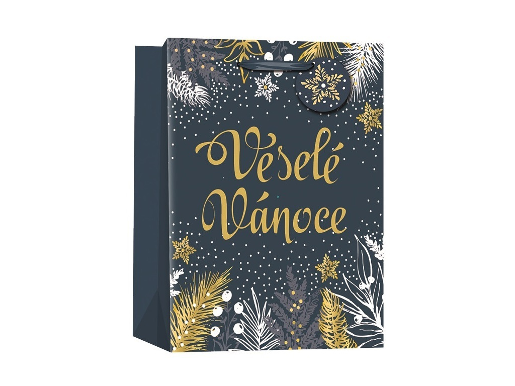 Taška papírová vánoční se zlatou ražbou L 26 x 32 x 12 cm