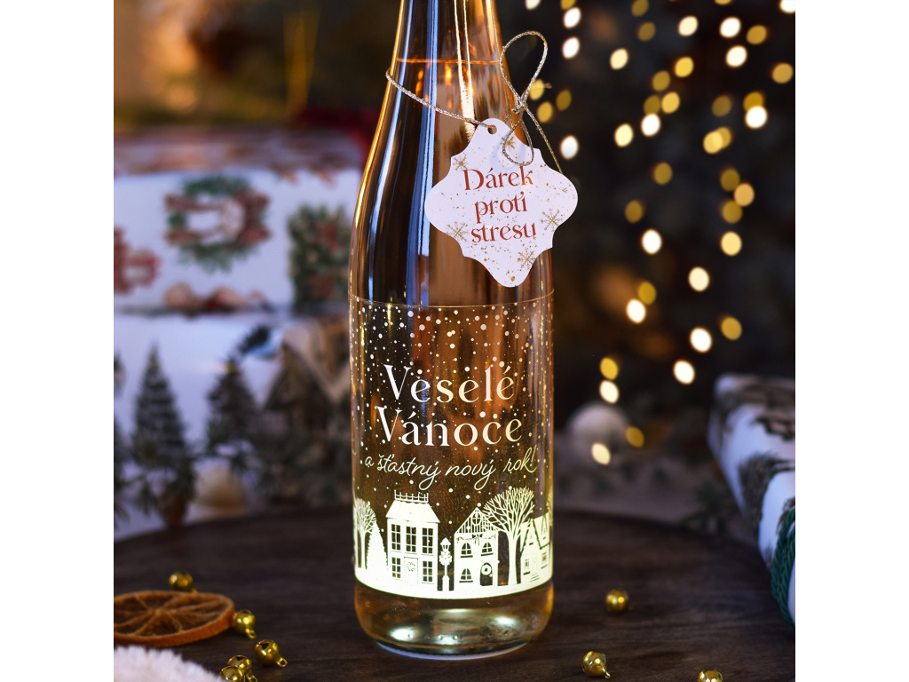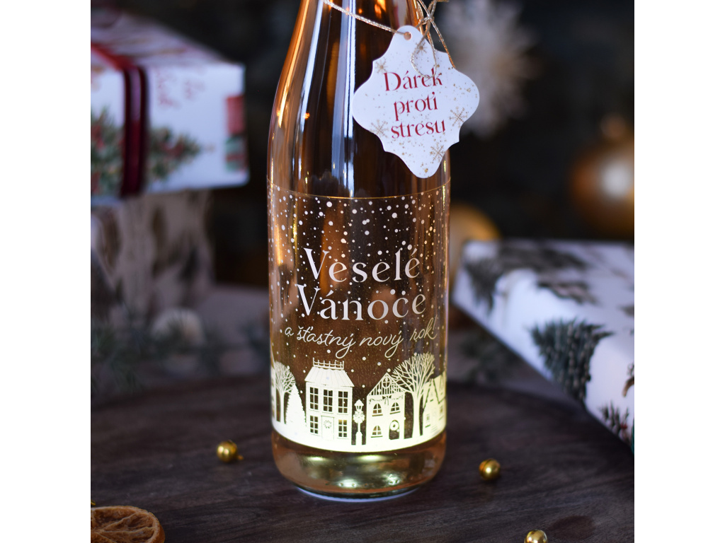 Toto elegantní víno ve vánoční edici je ideálním dárkem pro všechny milovníky sváteční atmosféry. Klasická 0,75l láhev je ozdobena jemným zimním motivem zasněžených domečků a přáním „Veselé Vánoce a šťastný nový rok“, které z ní dělají skutečný sváteční klenot.