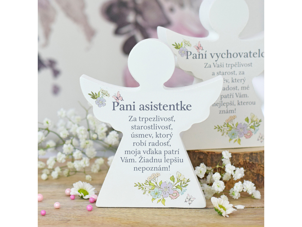 Dárkový anděl - Paní asistentce (s květinami) SK