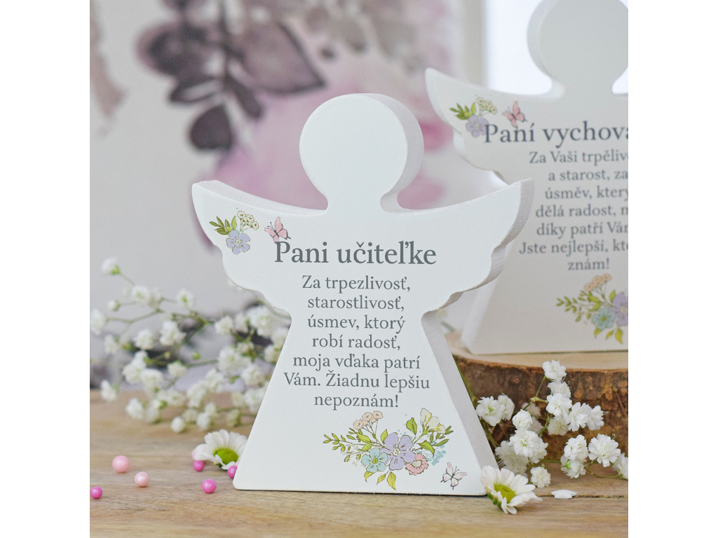 Dárkový anděl - Paní učitelce (s květinami) SK