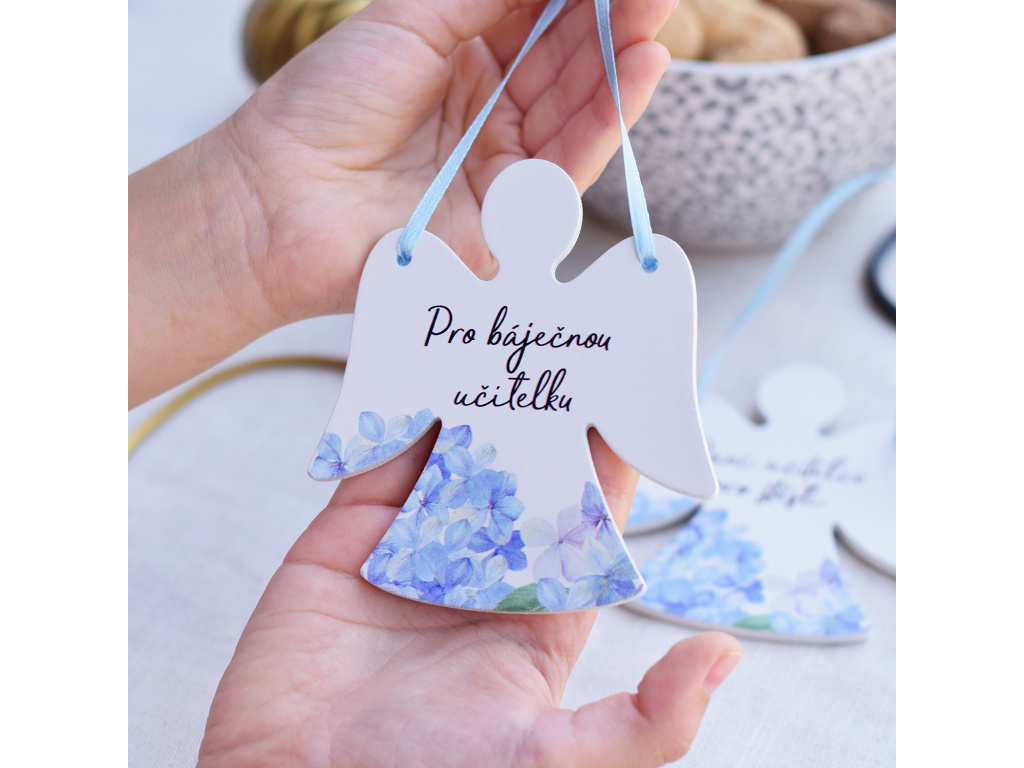 Andílek z této kolekce, která je zdobená modrou hortenzií je unikátní dárek, který potěší. Vybírejte z několika textů, které jsou k dispozici.