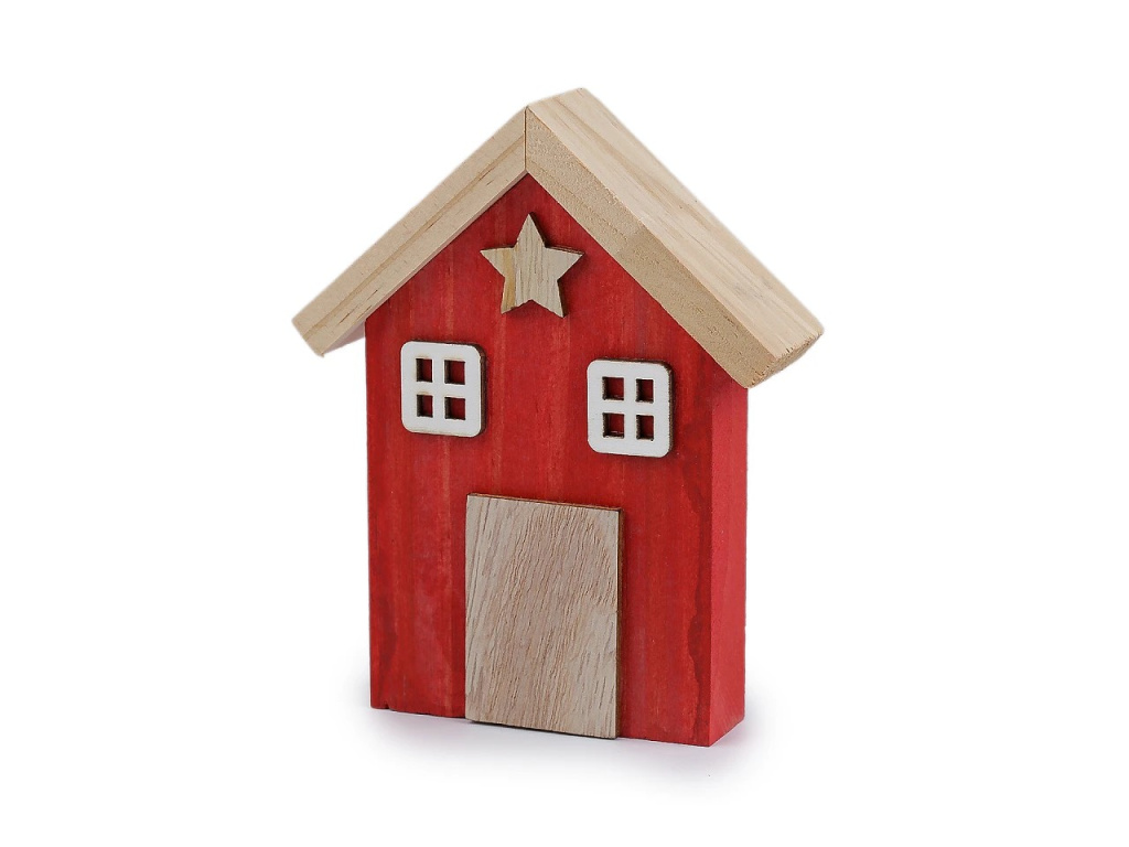 Dekorace celodřevěný domeček - červený