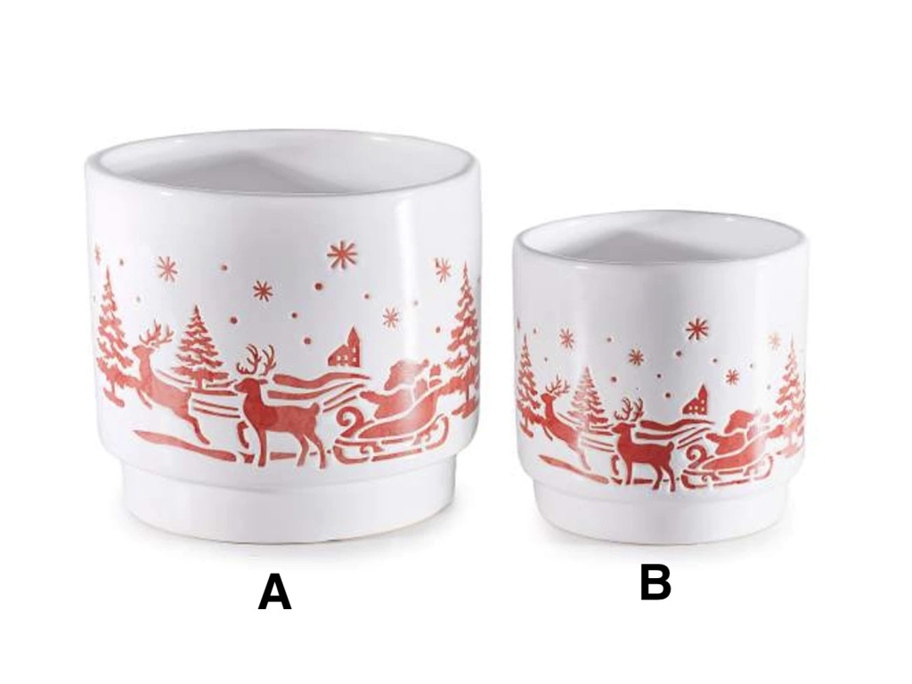 Vánoční vázička z terakoty s vánoční krajinou - 2 velikosti A Varianta