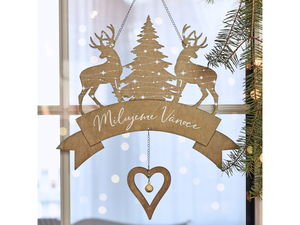 Závěsná dekorace s jeleny a rolničkou - Milujeme Vánoce