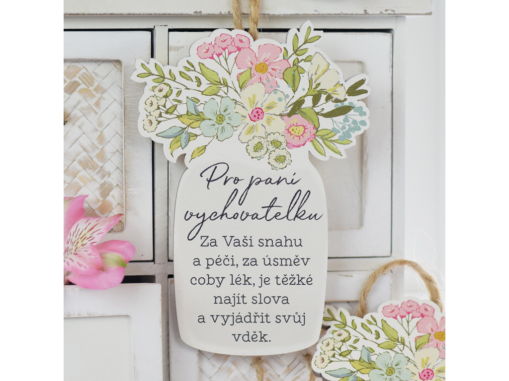 Kolekce nápaditých váziček plná květin. Výborný dárek ze dřeva s vybranými citáty, který potěší.