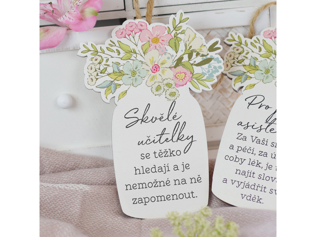 Kolekce nápaditých váziček plná květin. Výborný dárek ze dřeva s vybranými citáty, který potěší.