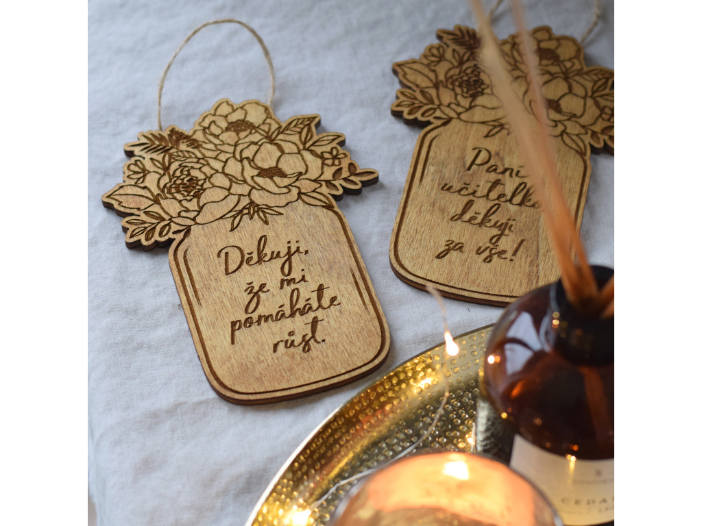 Tato dřevěná vázička bude milým a krásným dárkem pro paní učitelku. Pokud ji chcete opravdu překvapit, pak ji darujte tuto gravírovanou krásku.
