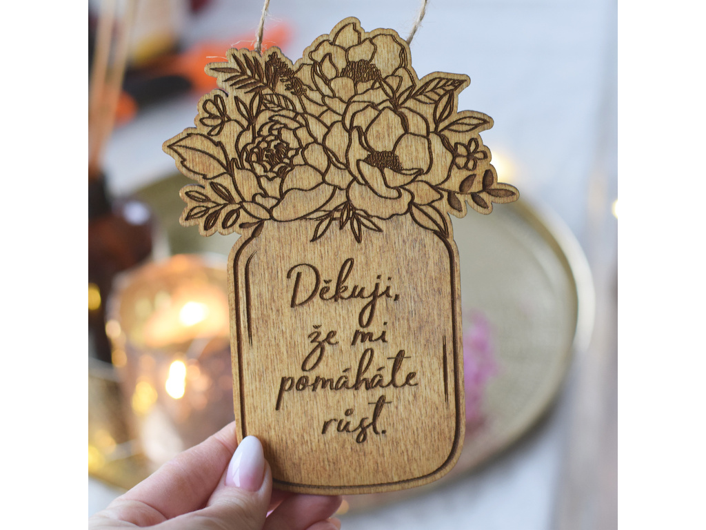 Dřevěná vázička - Děkuji, že mi pomáháte růst