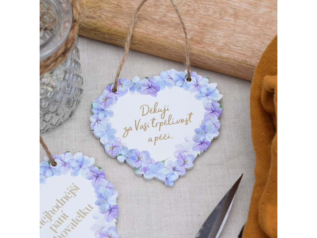 Dřevěné srdíčko zdobené českými texty a květy hortenzie je milým dárkem, kterým nikdy neurazíte. Vybírejte z několika variant z této kolekce.