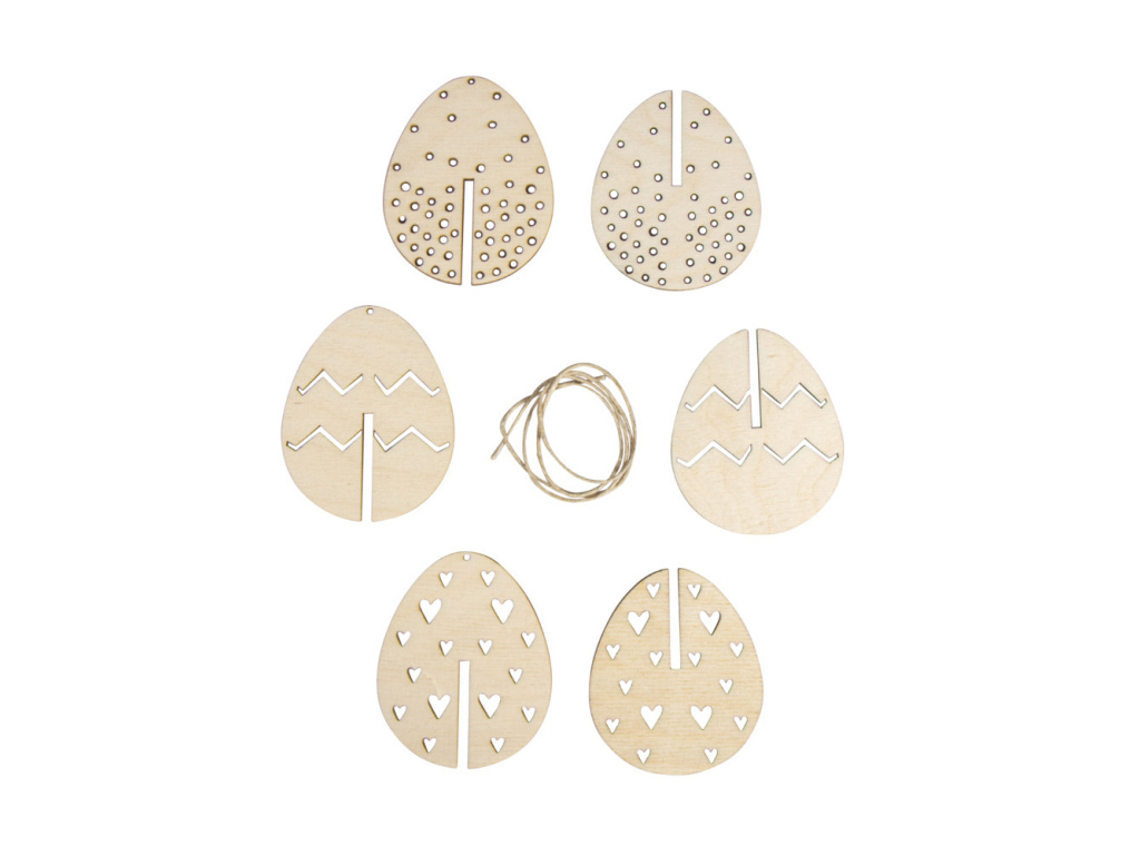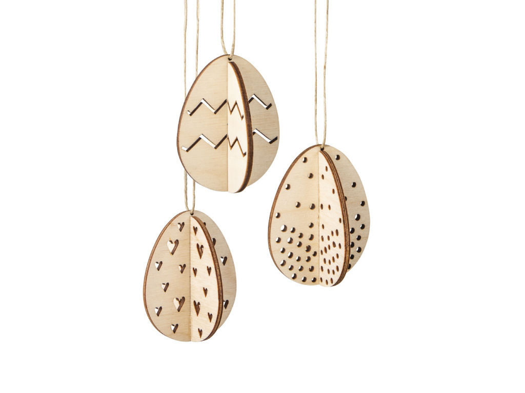 Dřevěná 3D vajíčka na zavěšení - 3 kusy