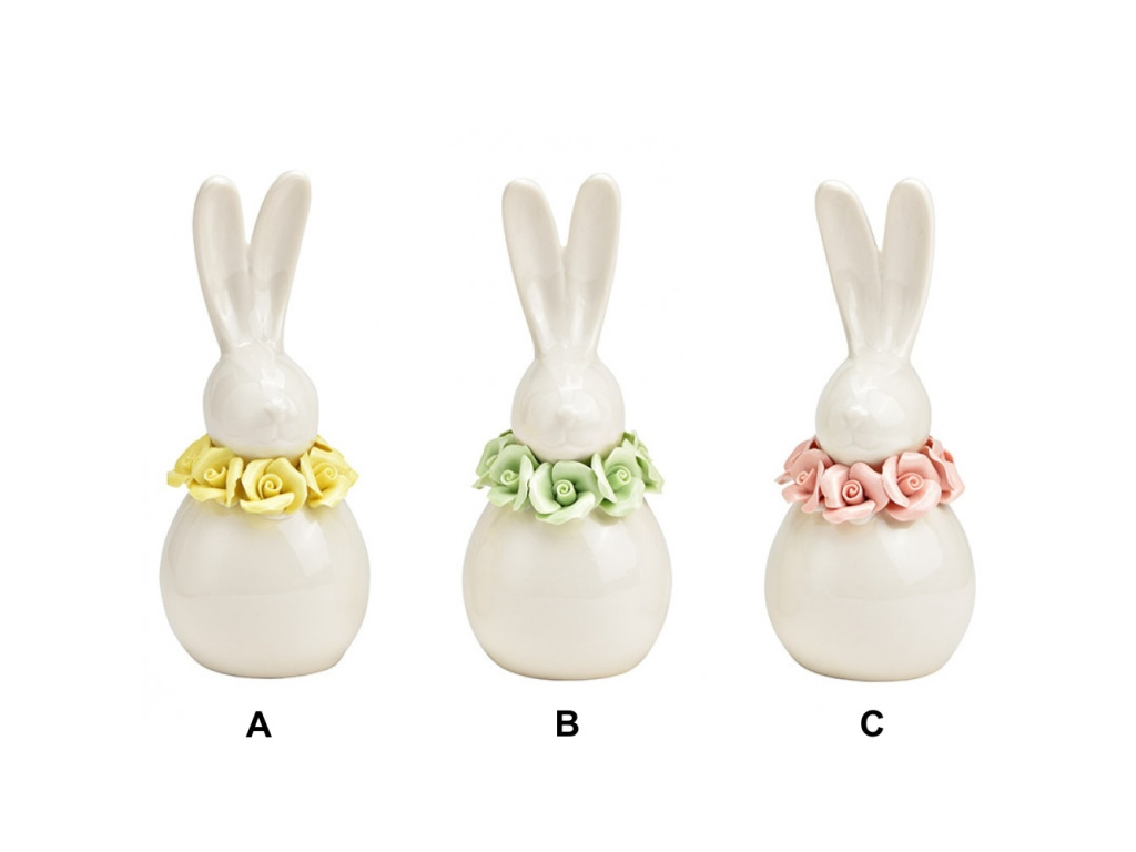 Porcelánový zajíček s květinami - 3 barvy, 8x17x7cm