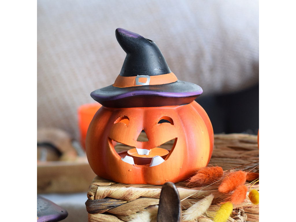 Dekorační dýně.Rozměry : 11,7 x 12,5 cm, výška 14 cm.Barva : kombinace oranžová s hnědou.Materiál : keramika.