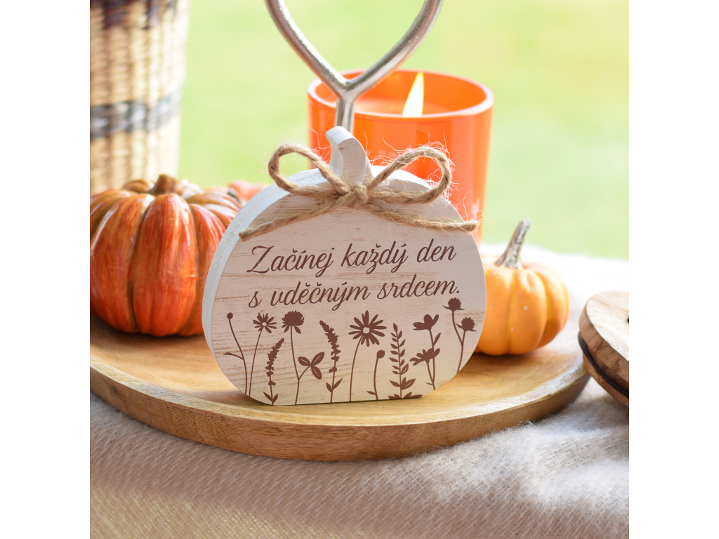 Hledáte originální dekoraci na podzimní aranžmá? Pak jste ji právě našli. Tato krásná dýně ze dřeva je pečlivě vyrobená v naší dílně a zdobí ji český nápis v podzimním duchu. Vyzdobte si na podzim svůj domov a vytvořte si útulnou atmosféru!   rozměr: 12 x 11 cm