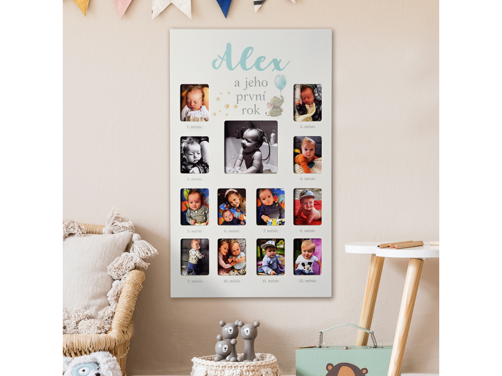Vytvořte nádhernou vzpomínku pro sebe i vaše děti. Tento jedinečný fotorámeček v českém podání může zdobit dětský pokojíček s fotkami vašeho dítka, které jste zachytili v průběhu prvního roku. Navíc Vám na rámeček upravíme i jméno dítěte.
