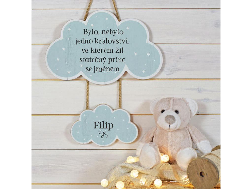 Něžné mráčky s hvězdami a citátem do dětských pokojíčků. Krásná ozdoba na pověšení se jménem na míru.