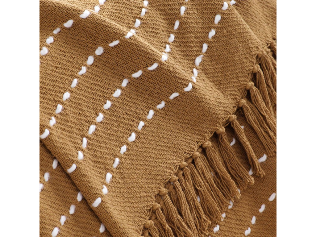Žlutá deka/přehoz s pompomy